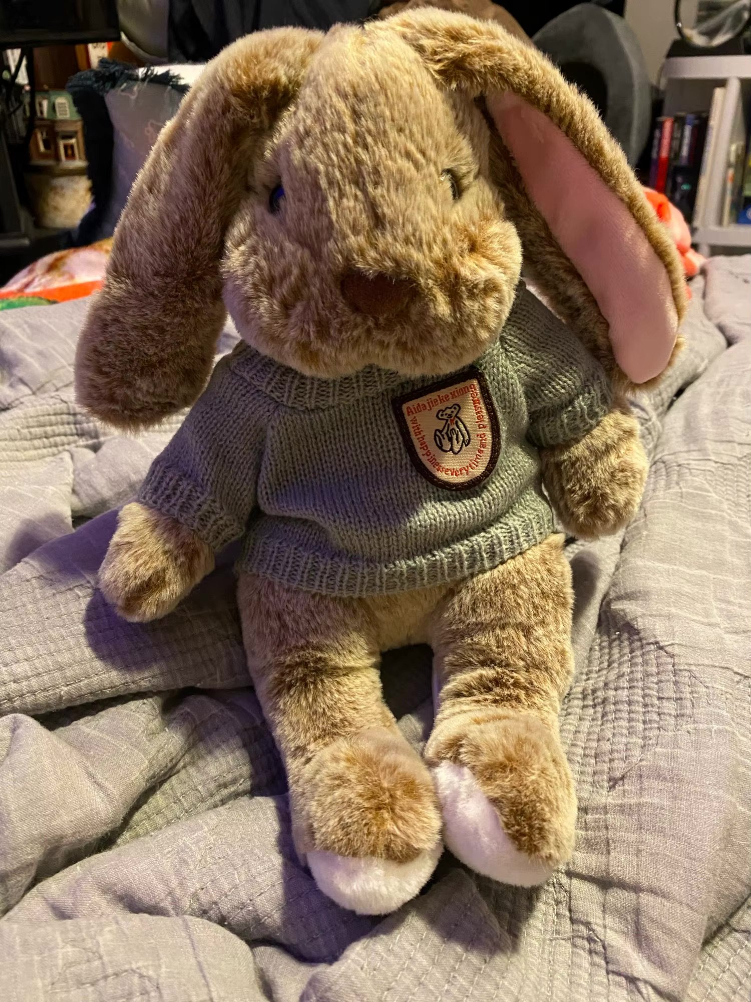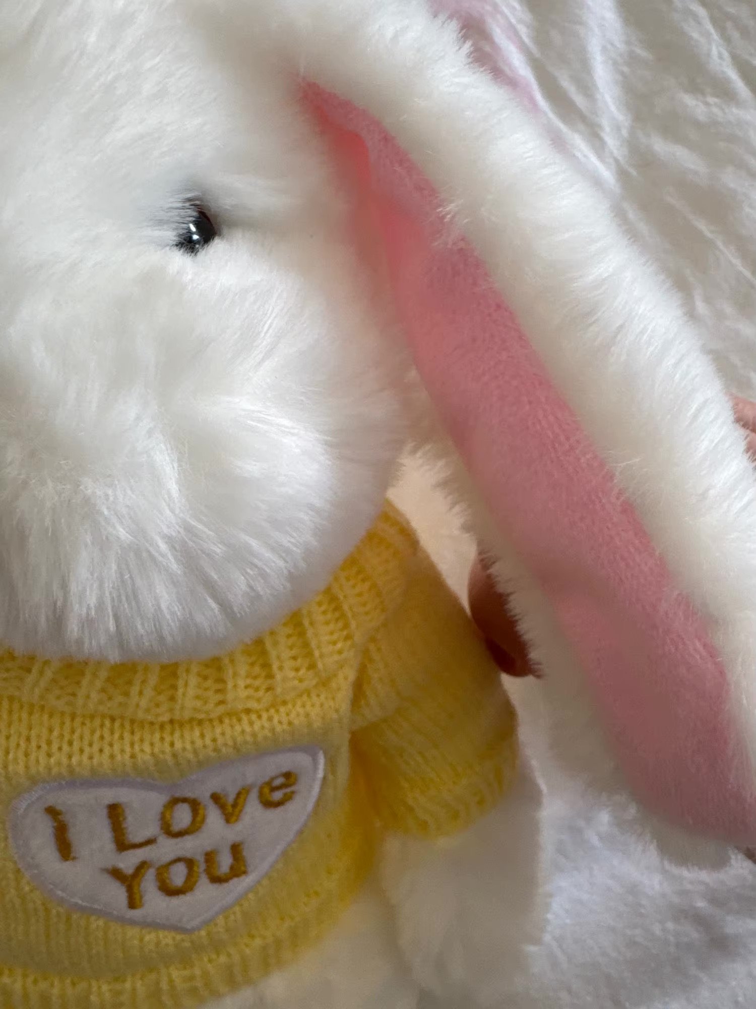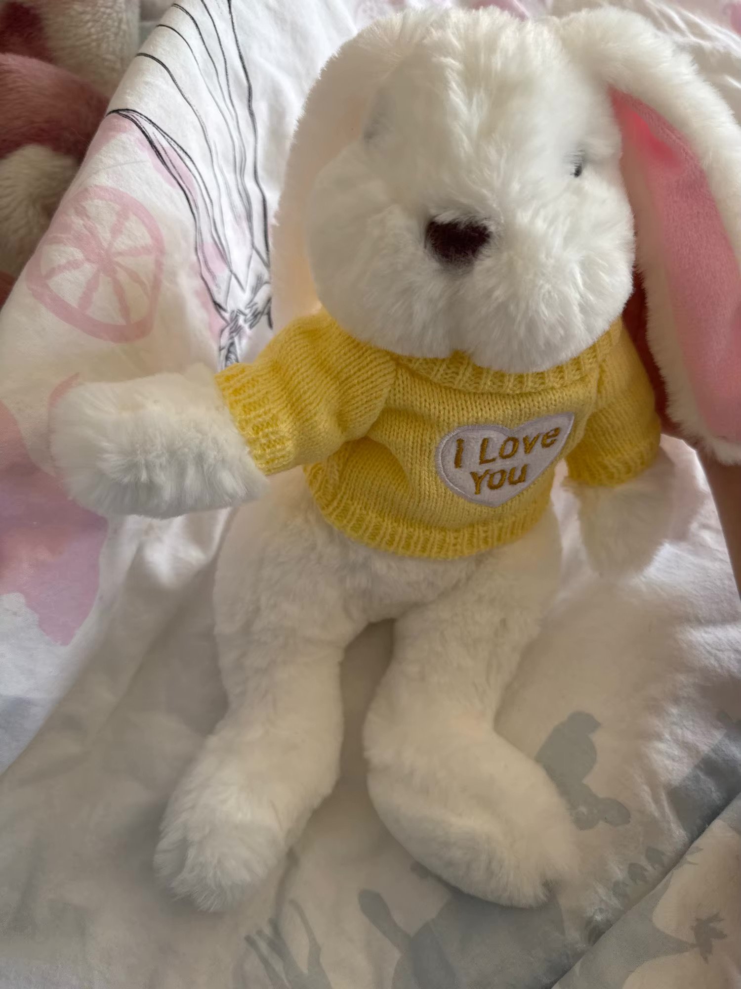 This is one of the cutest stuffed animals i’ve ever seen. It’s so soft and cuddly, i absolutely love it. Look at its little sweater! I just can’t get over how adorable this bunny is.