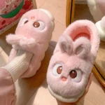 Cute Pink Bunny Plush Slippers – Soft & Cozy House Shoes